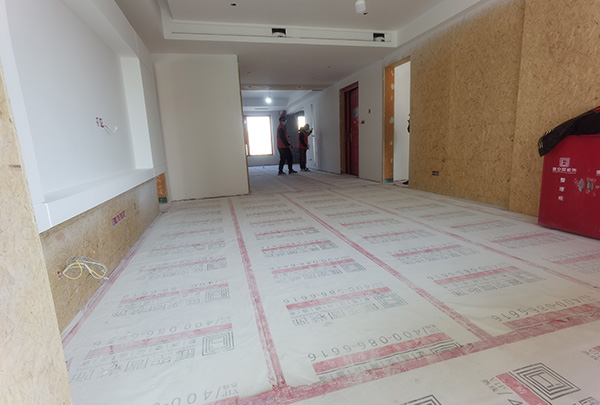 第四、防裂處理:為防止石膏板拼接處開裂,在原有工藝的基礎(chǔ)上,在貼一層網(wǎng)格布,確保后期乳膠去不會(huì)開裂。