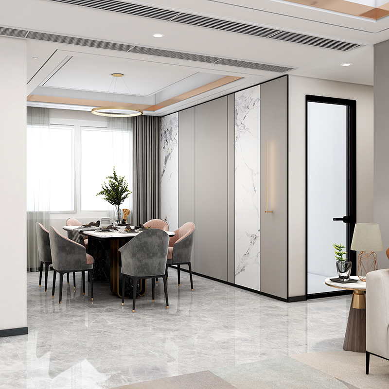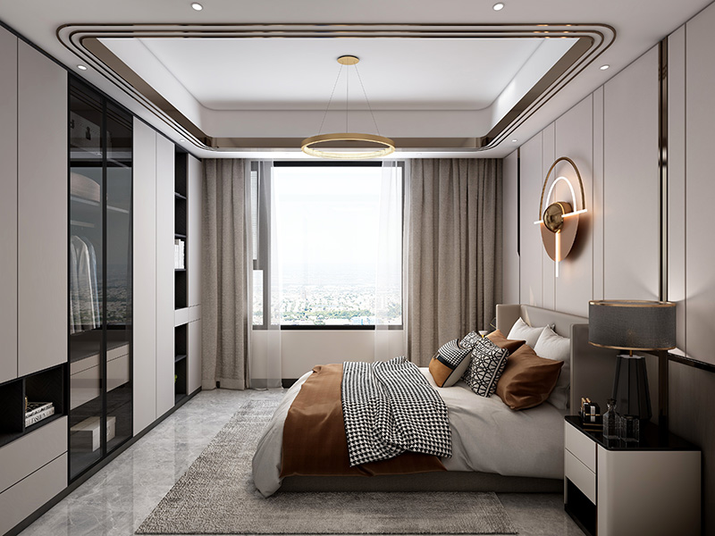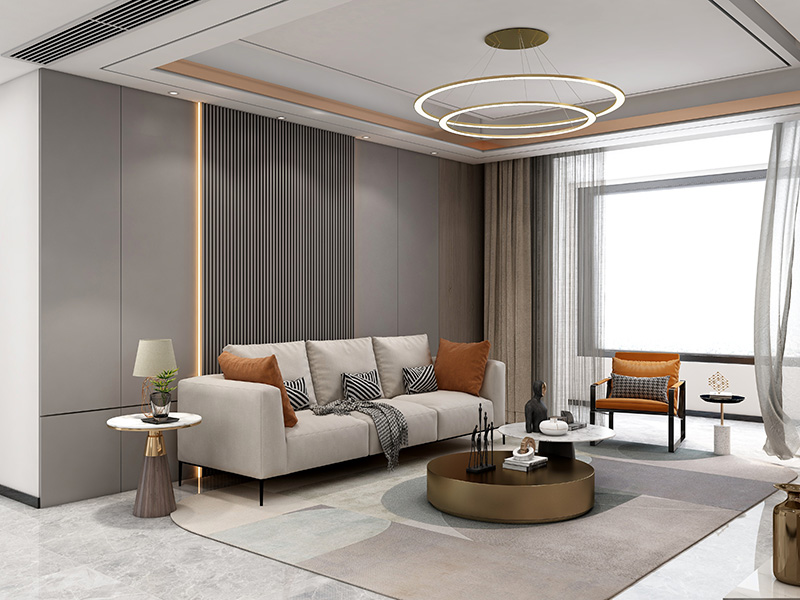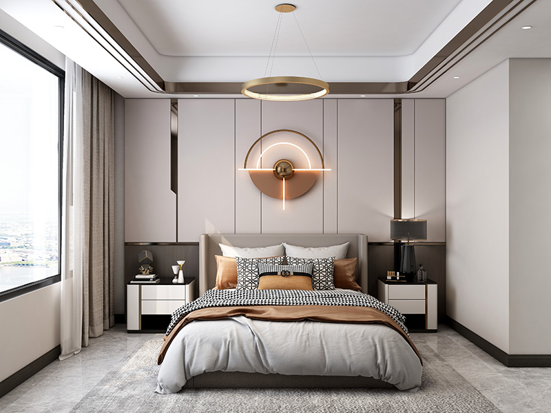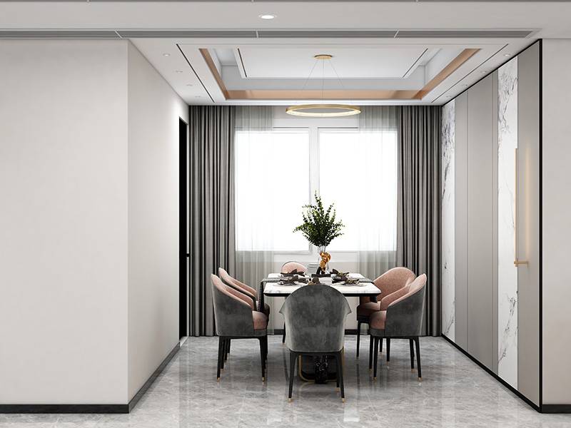 現代輕奢風格的裝飾多以簡單為主。無論是空間布局還是與軟裝設計搭配,它摒棄了復雜的裝飾和繁復的圖案,倡導簡單的設計風格,認同一種簡單的輕奢設計可以反應出高級感,現代輕奢風格傾向于簡單的北歐風格,線條優美,優雅整潔,具有強烈的線條設計感。此外,其余面料的裝飾品線條柔和,整體空間低調含蓄,凸顯奢華設計感。