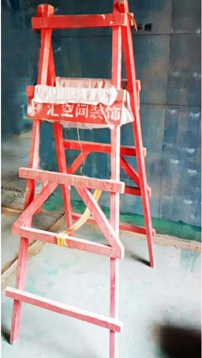 施工現場需用統一的人字梯,用紅色油漆滿刷紅色,外側用自噴漆噴“匯空間裝飾”字樣。