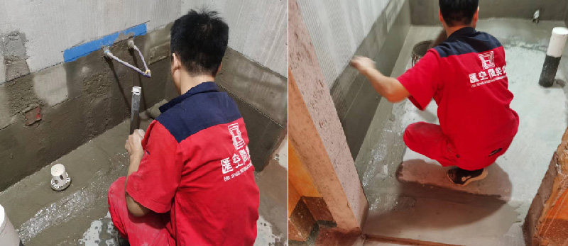 1、先用防滲靈將開槽處及砂眼下水管口或起砂處修補平整,干燥后在進行防水涂刷,墻地面使用雷帝防水多層防水涂層,涂刷遍數(shù)三遍以上;實現(xiàn)防水新革命,防漏性能加強確保用水無憂;基層表面應(yīng)平整,不得有空鼓、起砂、開裂等缺陷。門口處留有30至50 mm反水坡,防水層應(yīng)從地面延伸到墻面,高出地面600mm。淋浴區(qū)、防潮墻面的防水層高度不得低于1800mm嚴格按照公司要求施工。